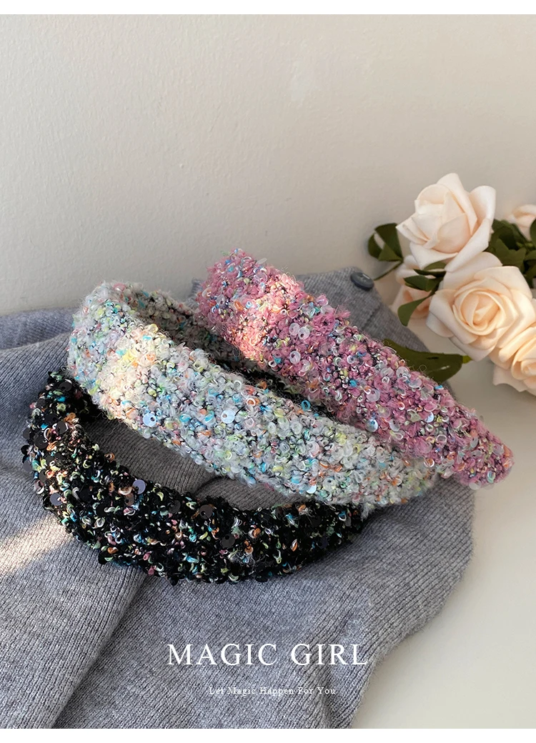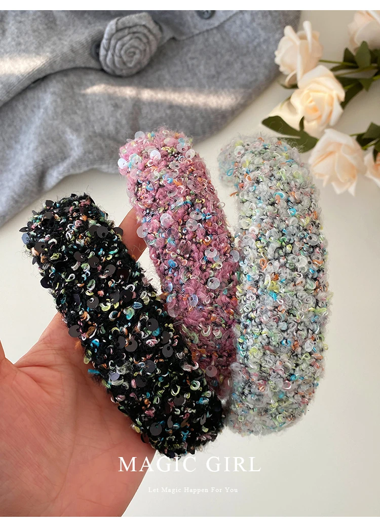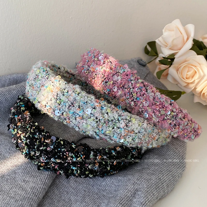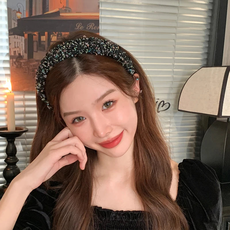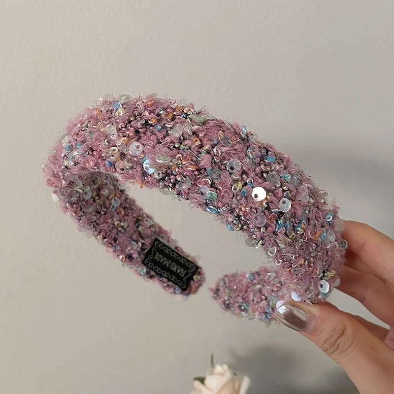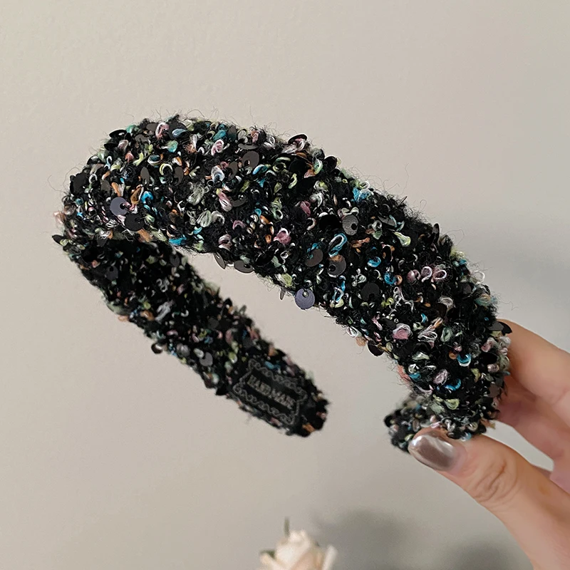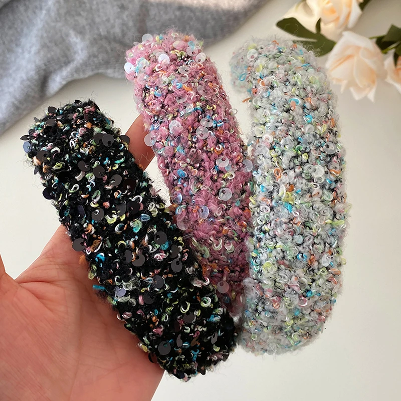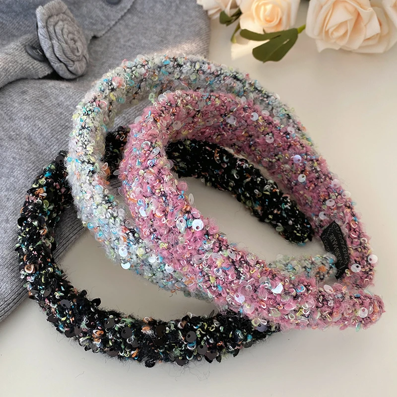 Female Solid Color Sequin Wide Headbands Elegant Fashion Lightweight Glitter in Stock Hairbands Accessories for Women Daily Use