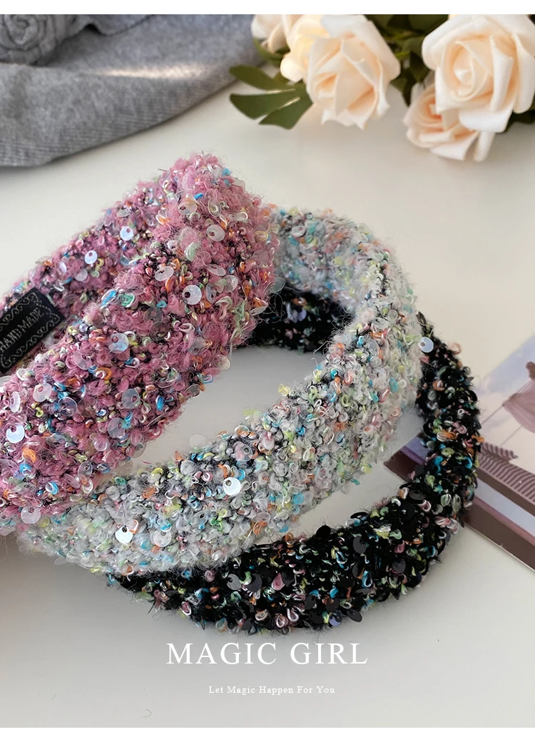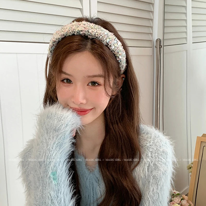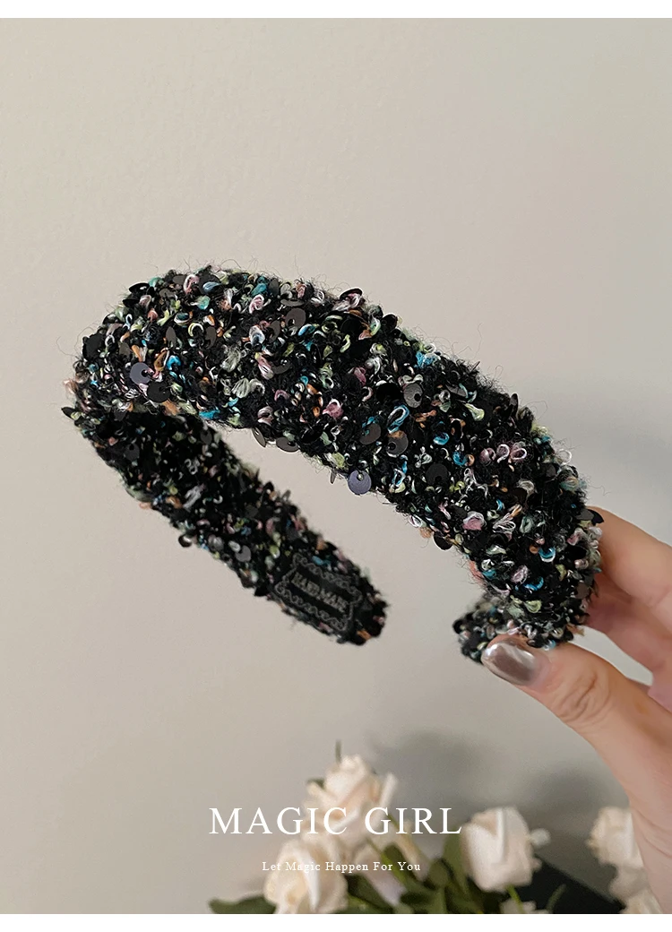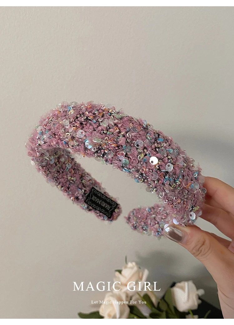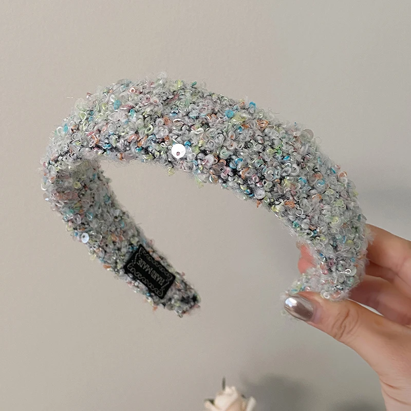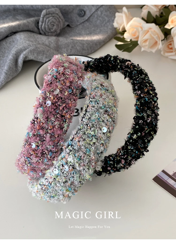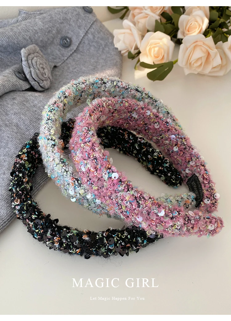 Female Solid Color Sequin Wide Headbands Elegant Fashion Lightweight Glitter in Stock Hairbands Accessories for Women Daily Use