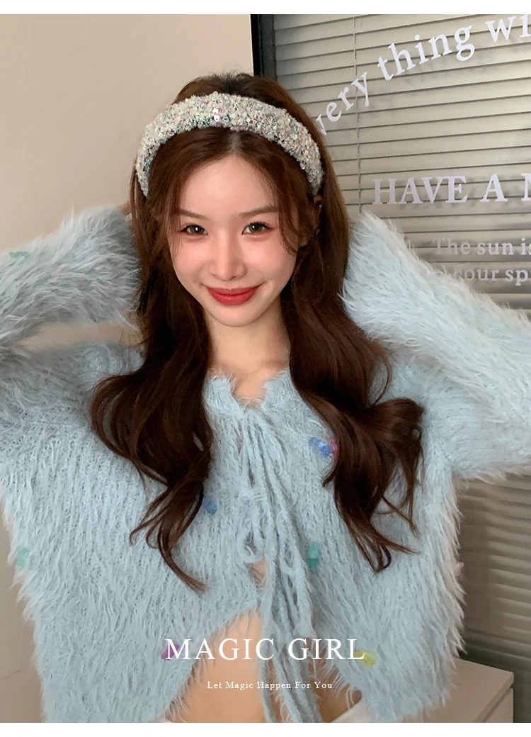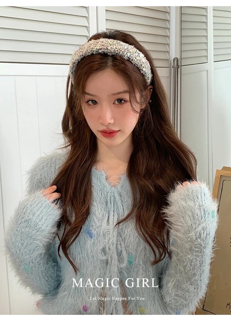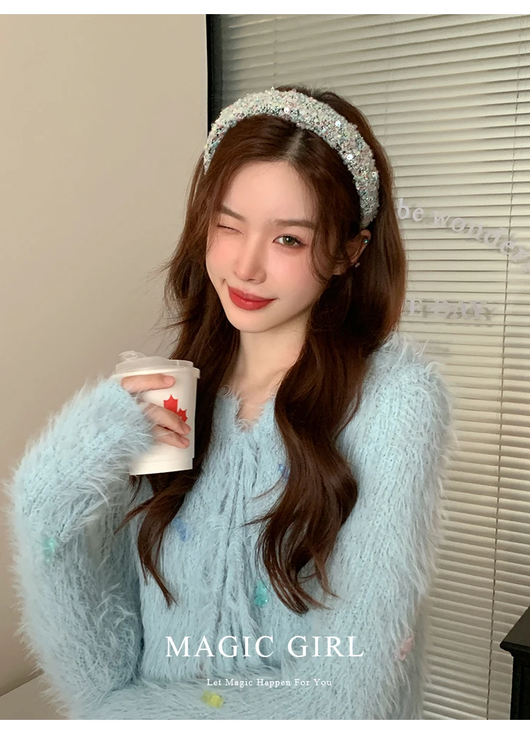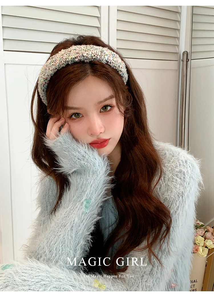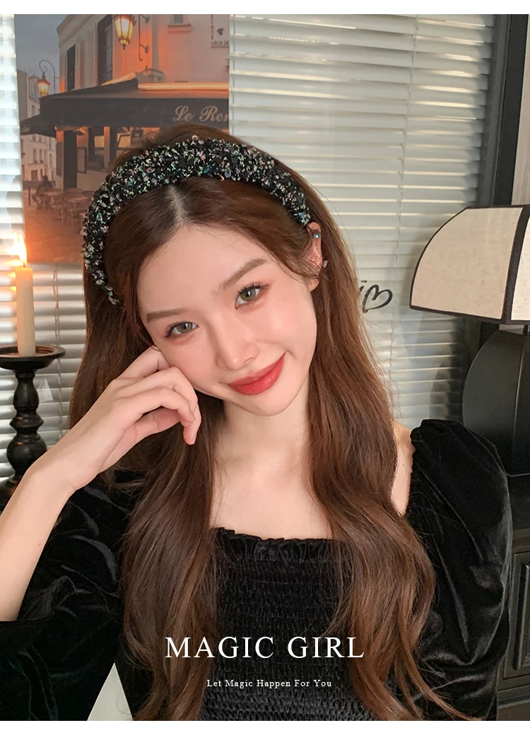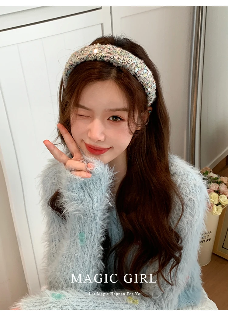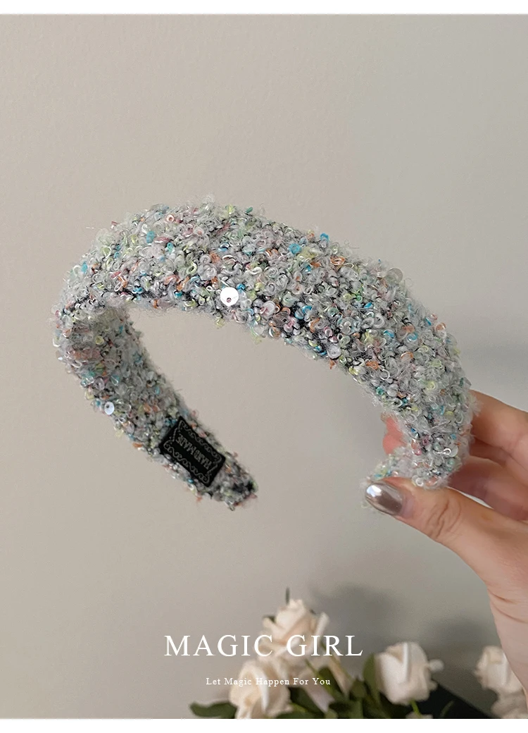 Female Solid Color Sequin Wide Headbands Elegant Fashion Lightweight Glitter in Stock Hairbands Accessories for Women Daily Use