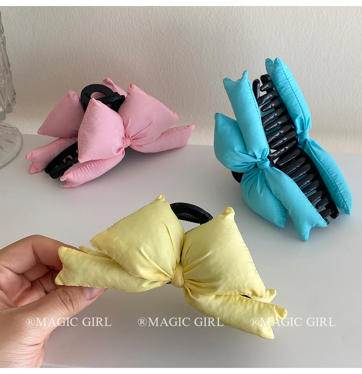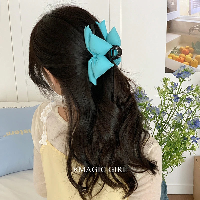 Large Solid Color Bowknot Hair Claw Clips for Women & Girls Fabric Hair Accessories Cute & Trendy Haarspange for Daily Wear