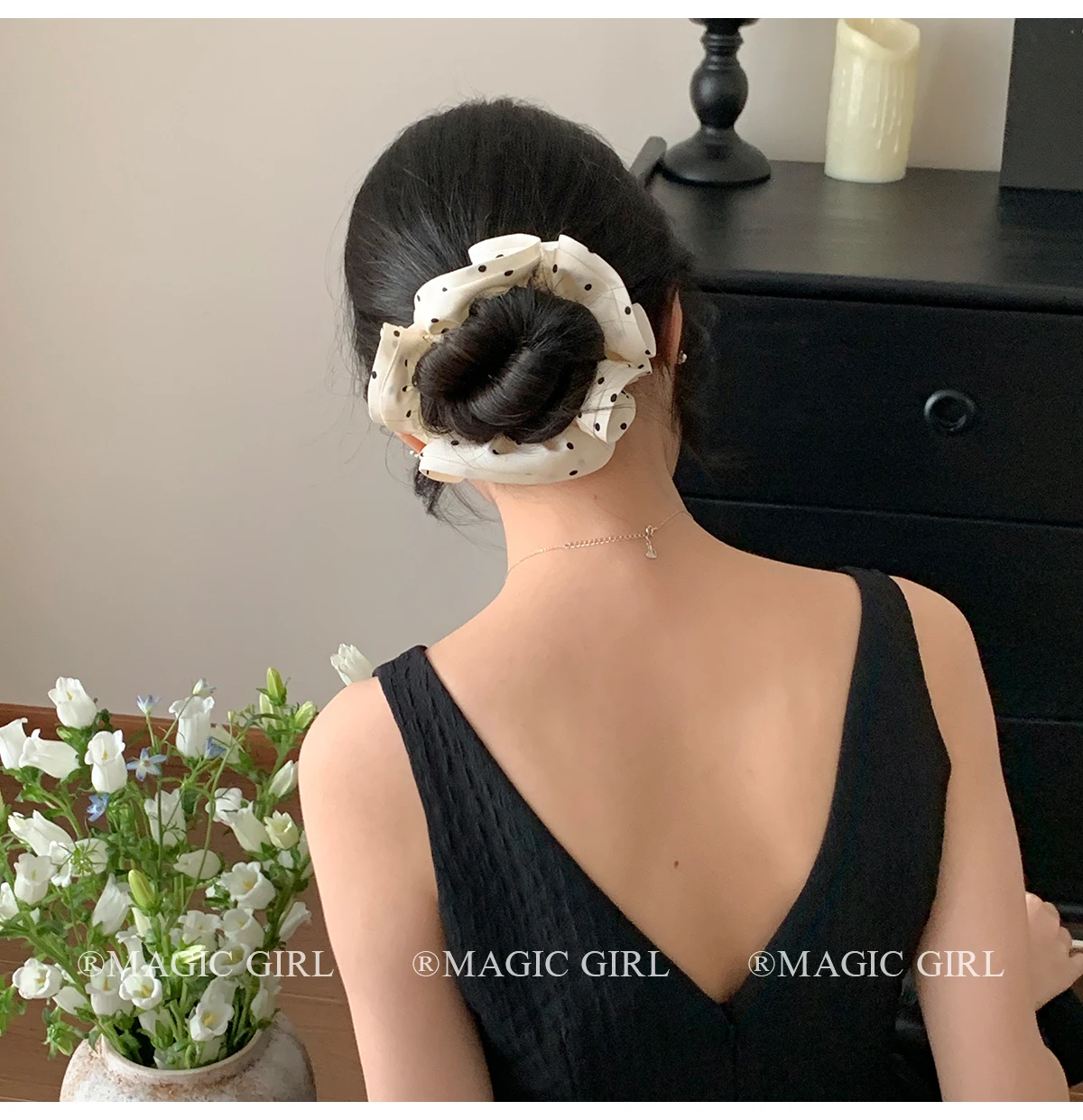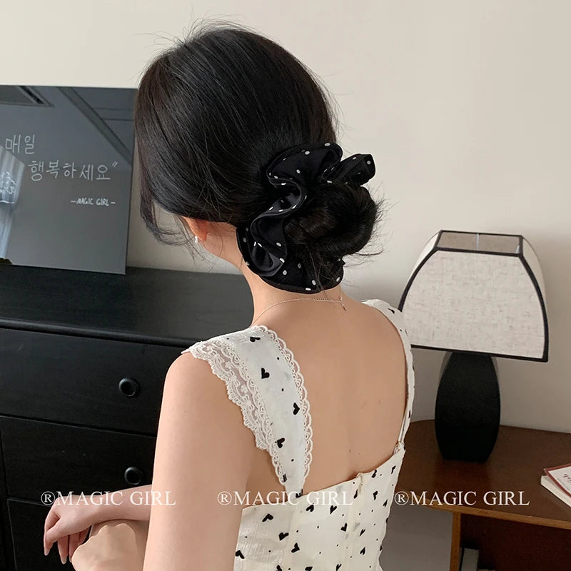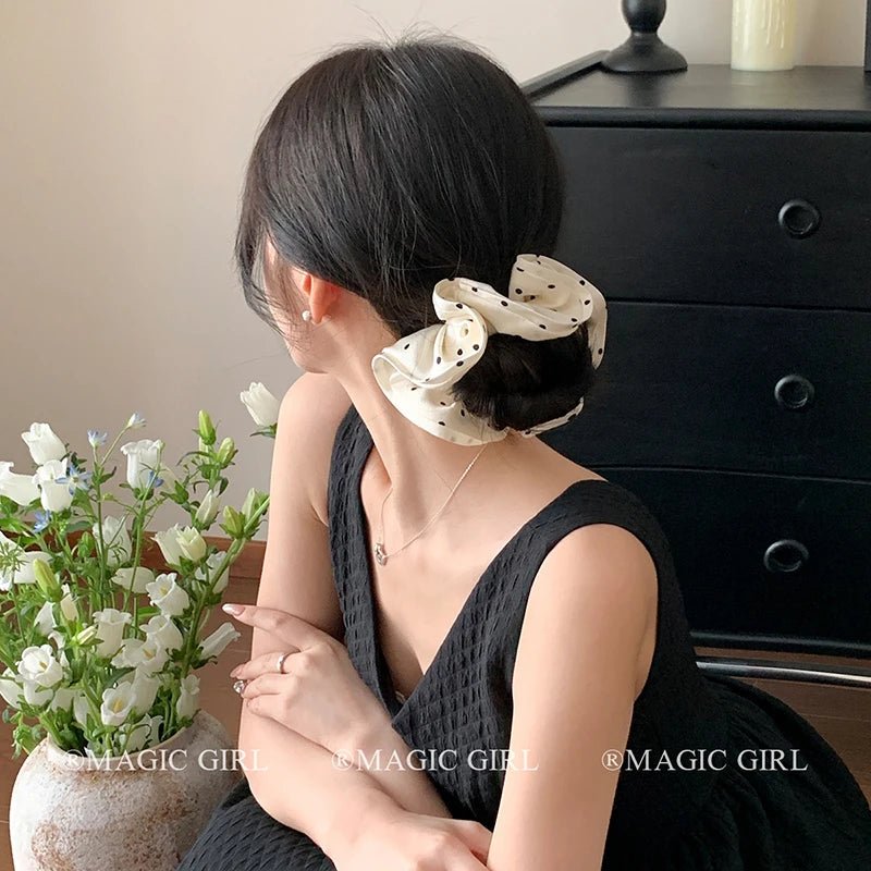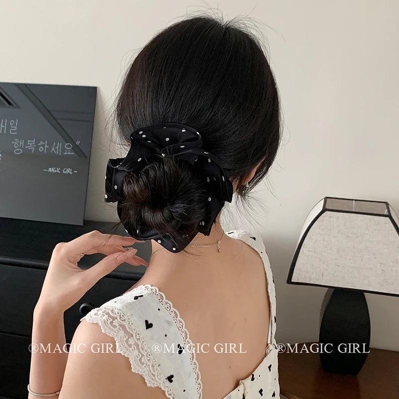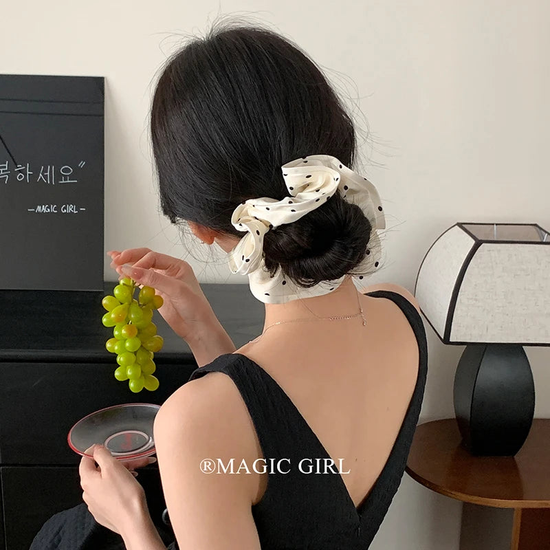 Elegant Vintage Scrunchies Girls Chic Hair Ties Solid Color Dot Accessory for Women Fashionable Chic Hair Accessories