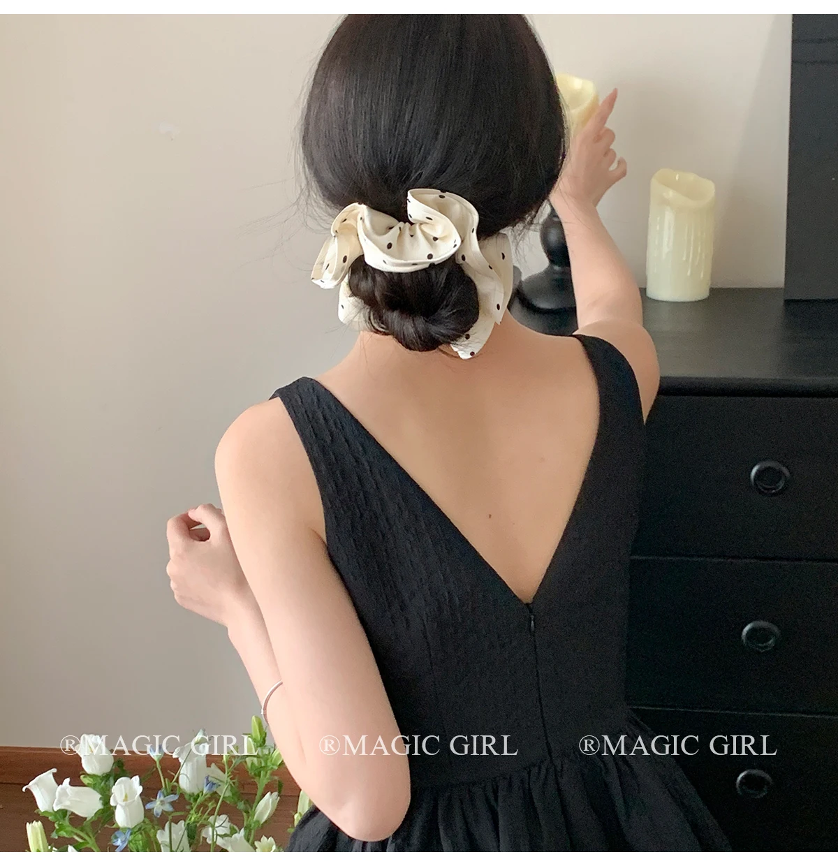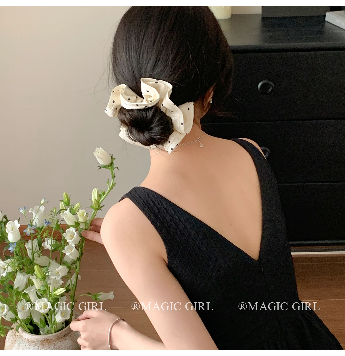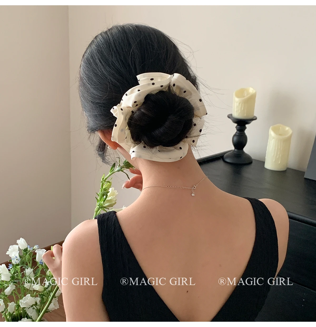 Elegant Vintage Scrunchies Girls Chic Hair Ties Solid Color Dot Accessory for Women Fashionable Chic Hair Accessories