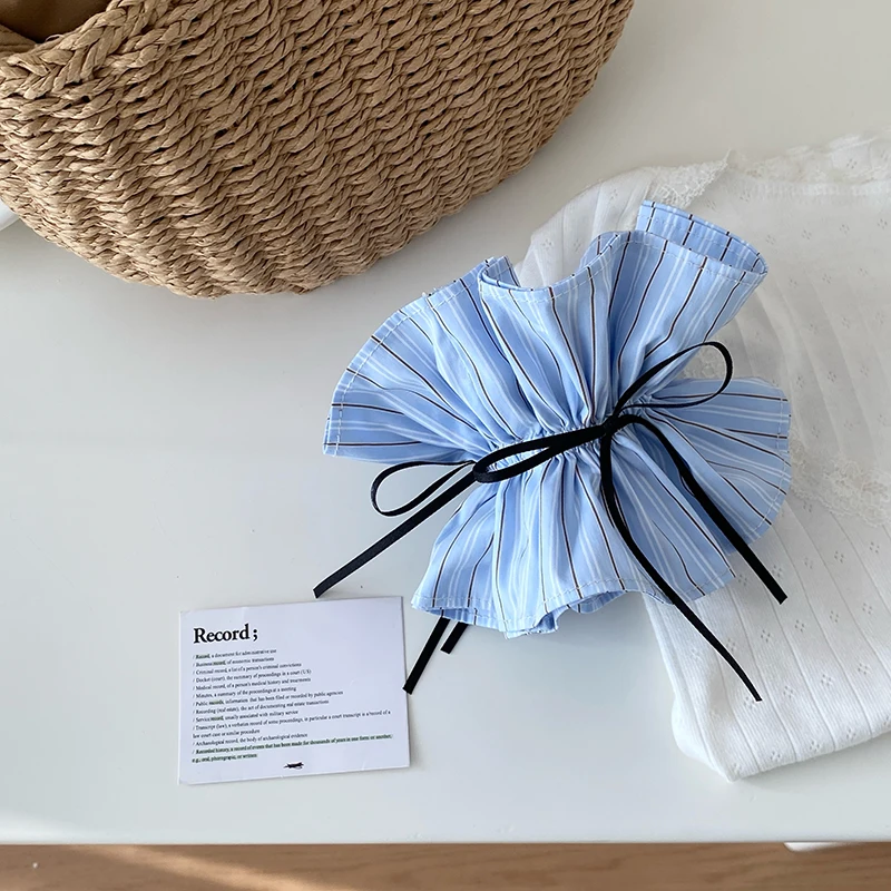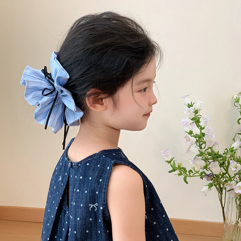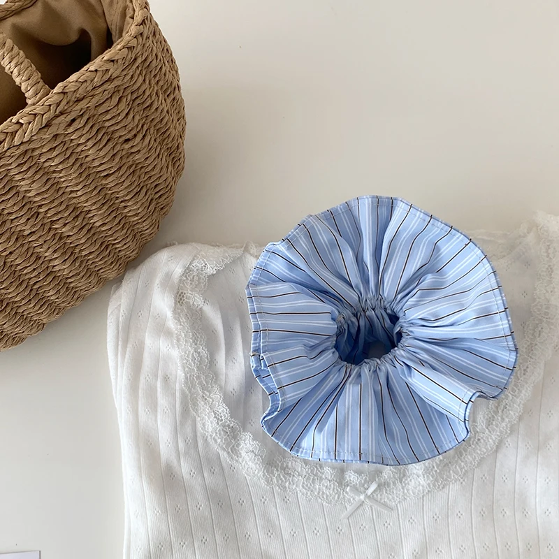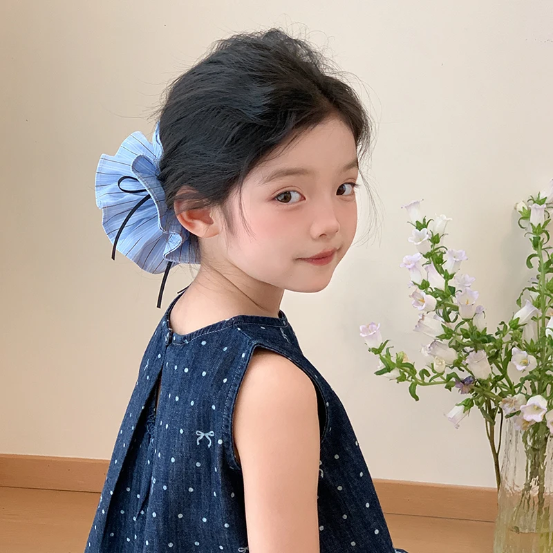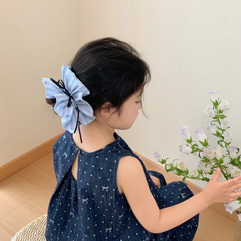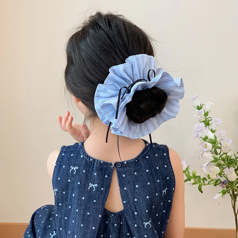 Kids Blue Plaid Ribbon Double Layer Large Scrunchies Fashion Chic Wholesale in Stock Hair Ties Accessories for Children Daily