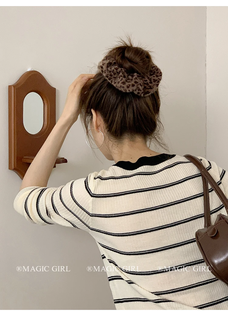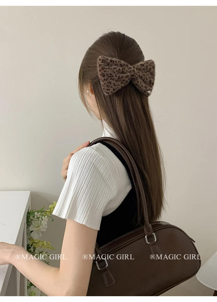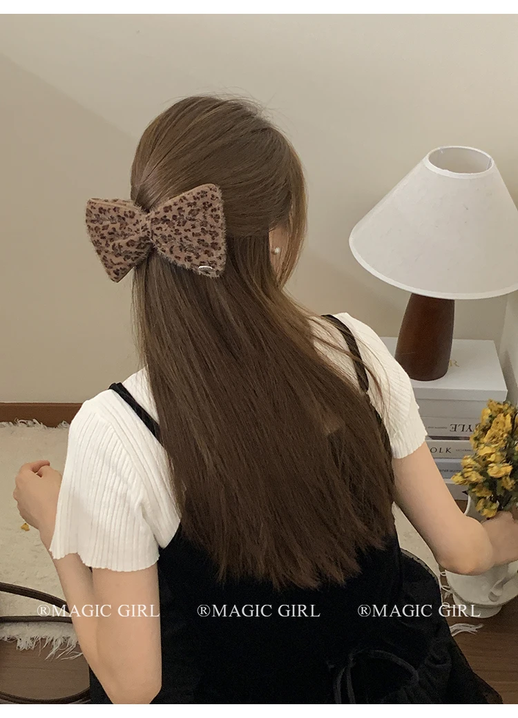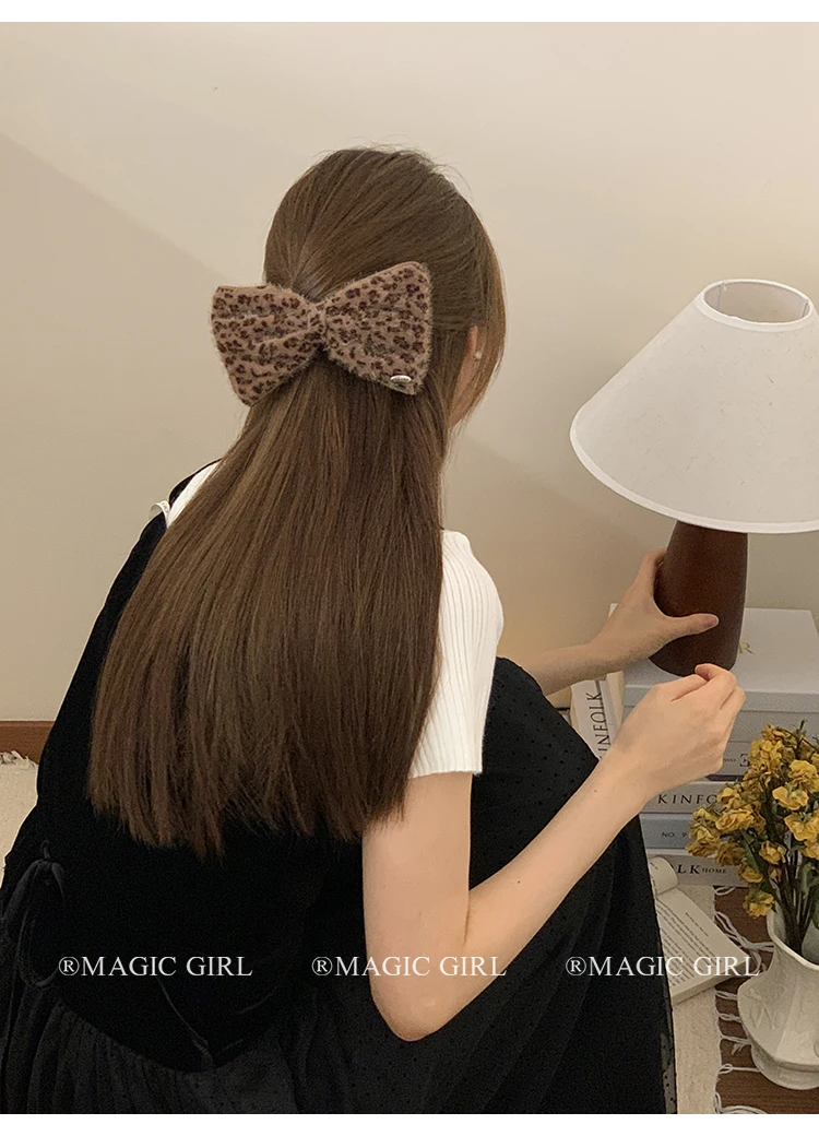 2025 Hot Sale Brown Leopard Print Dots New Design Scrunchies Hair Clips Fashion Elegant Hairpins Ties Set for Women Daily Street