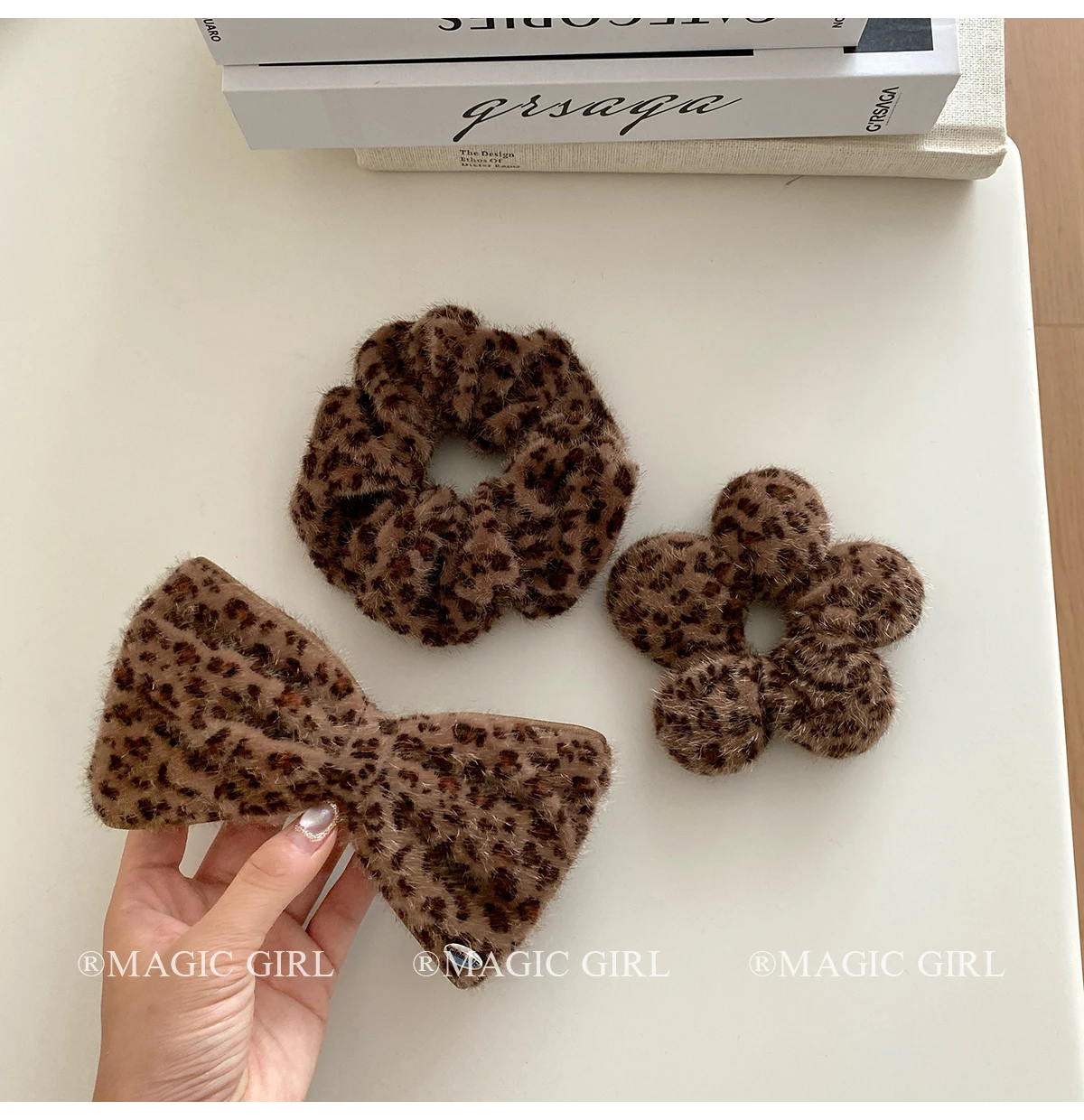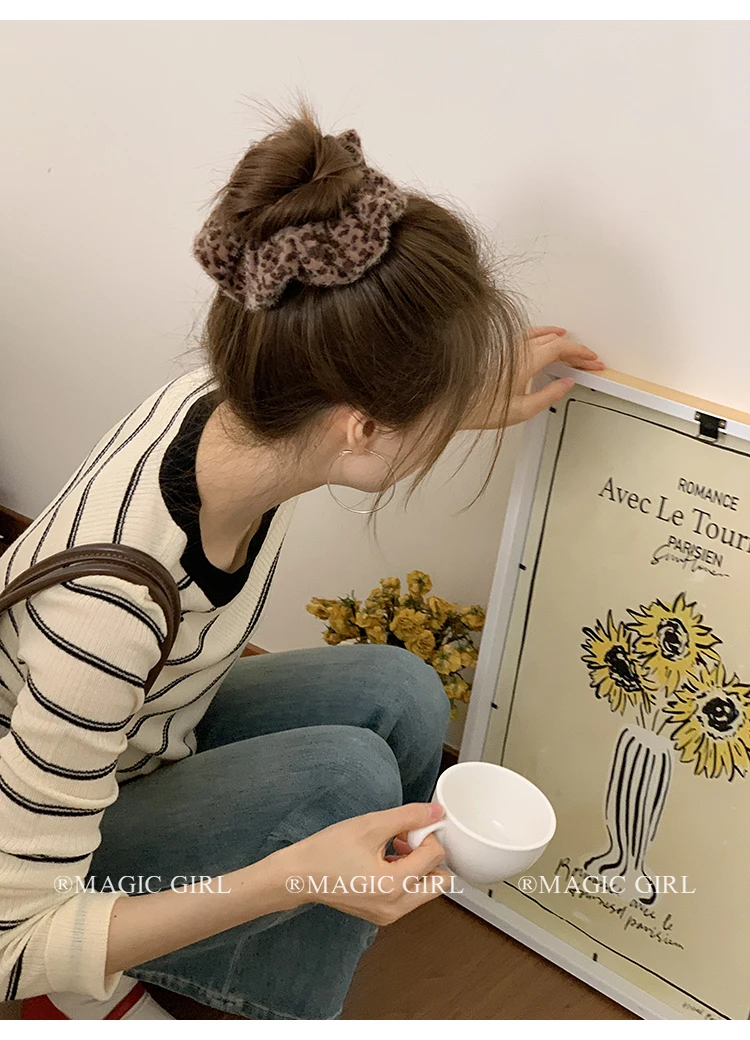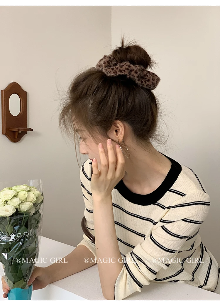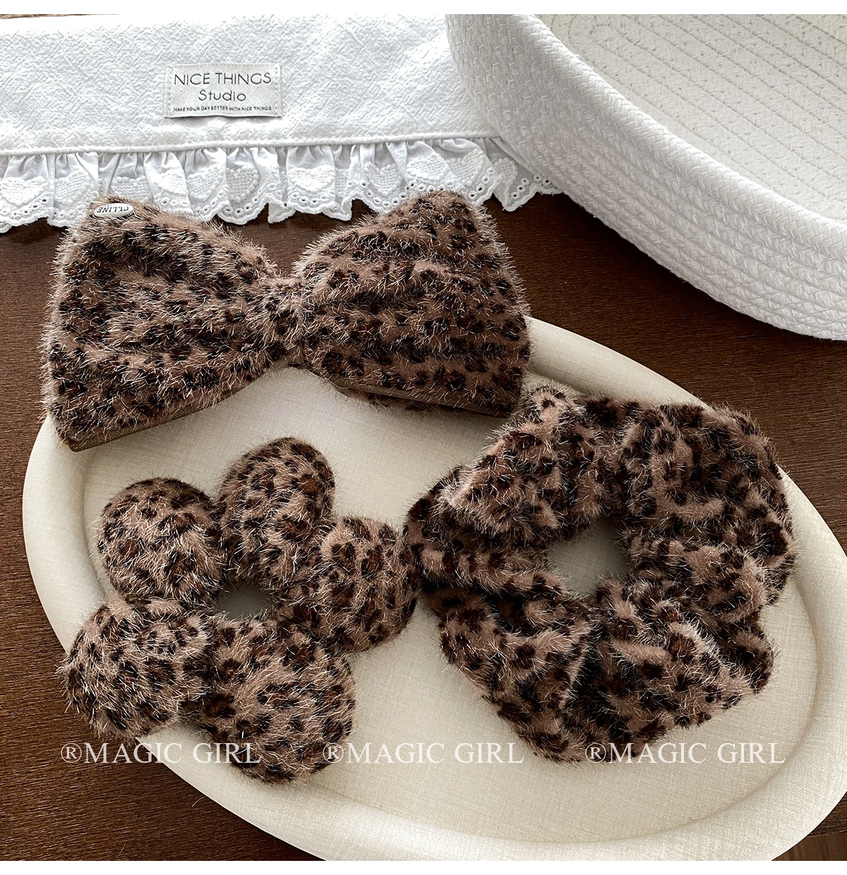 2025 Hot Sale Brown Leopard Print Dots New Design Scrunchies Hair Clips Fashion Elegant Hairpins Ties Set for Women Daily Street