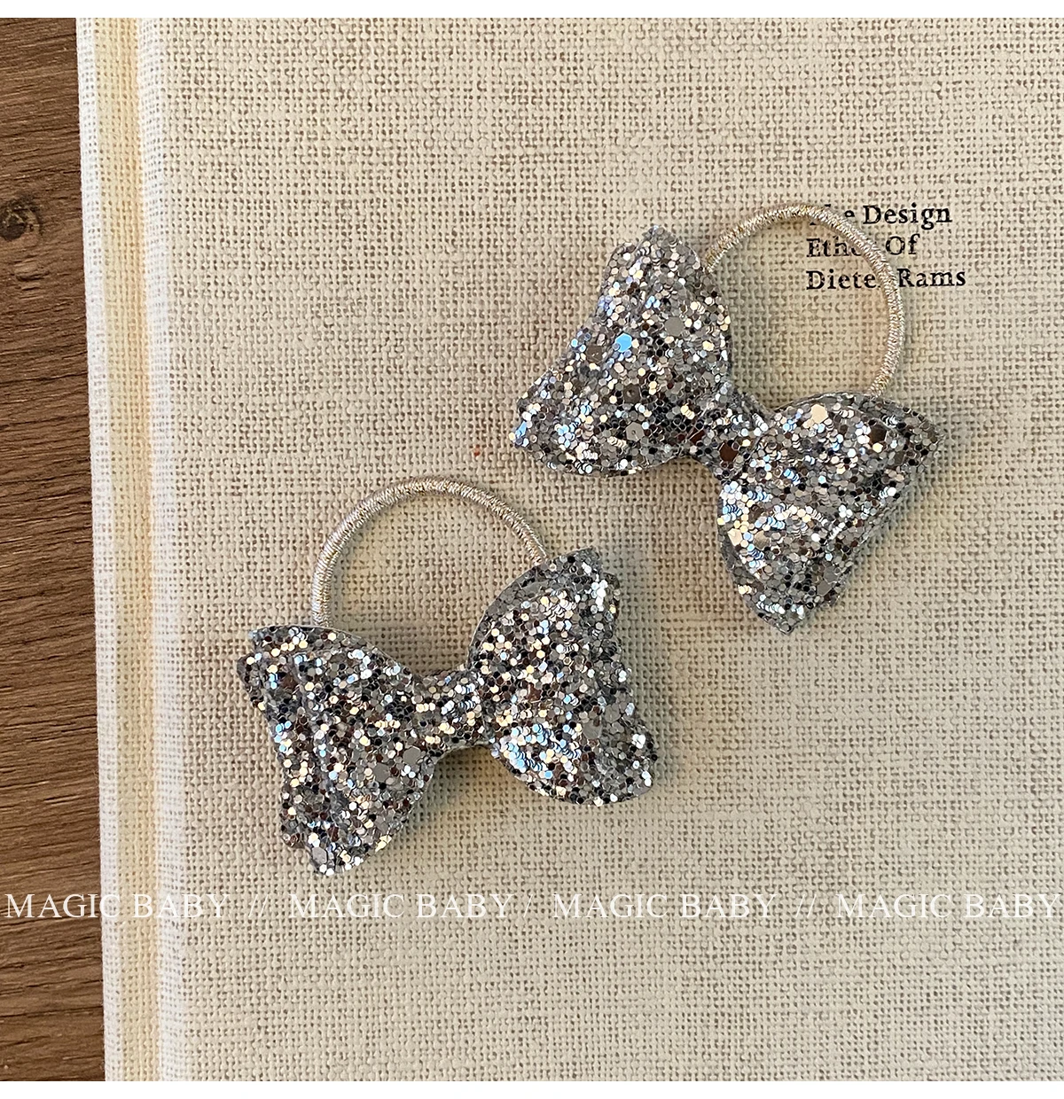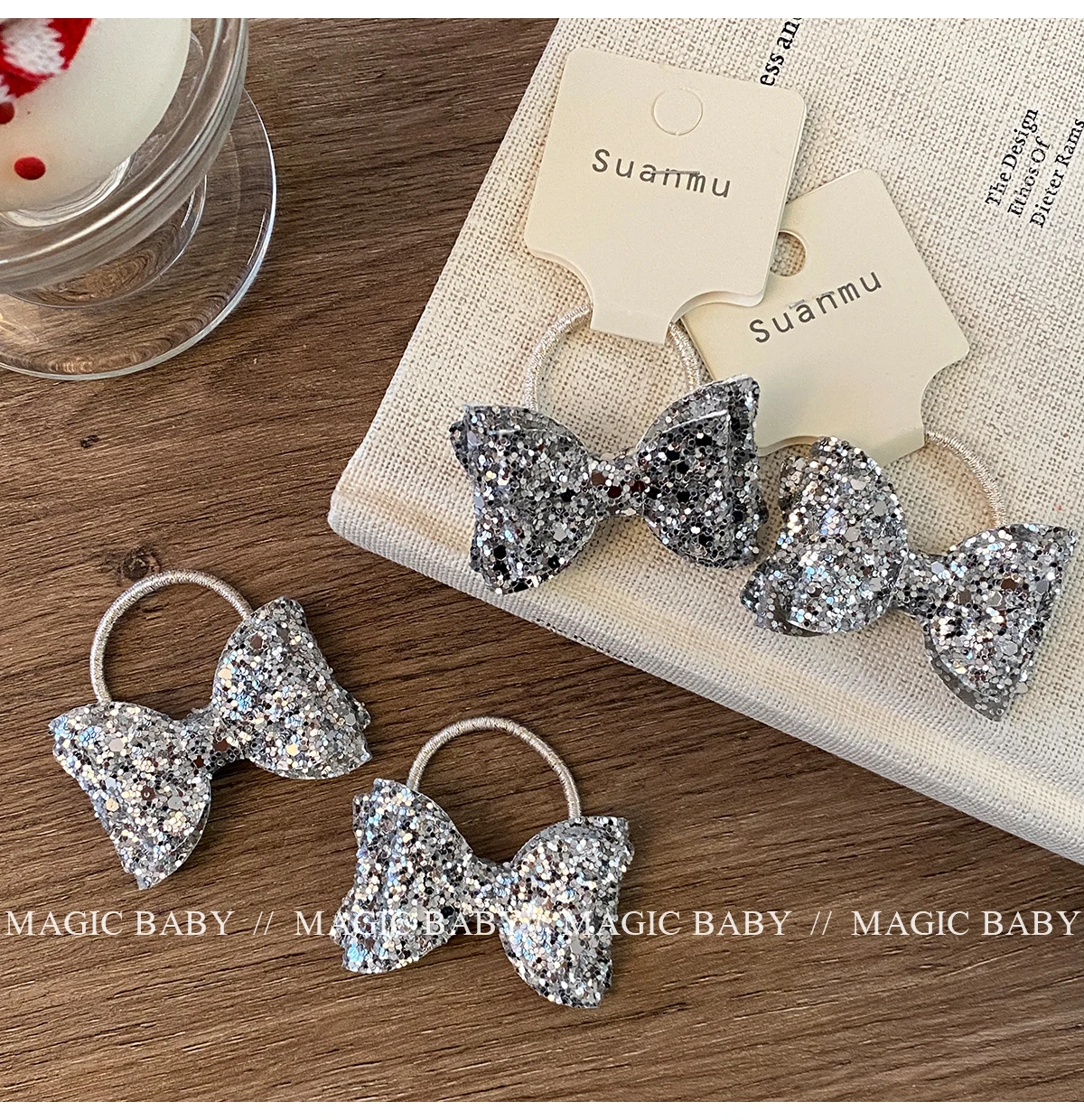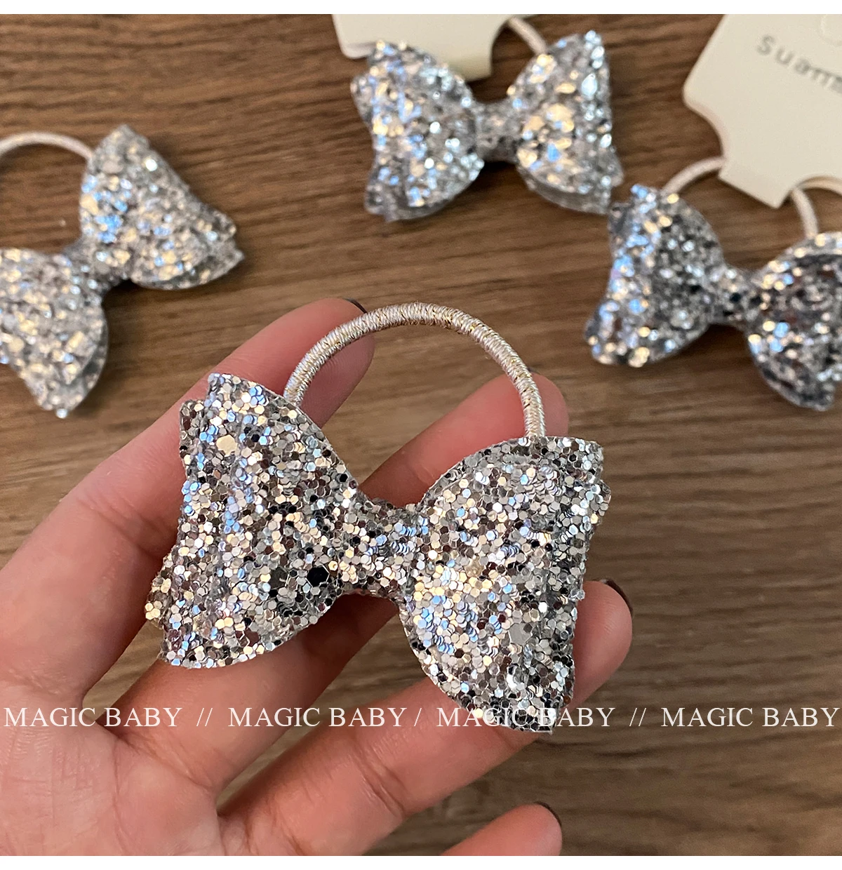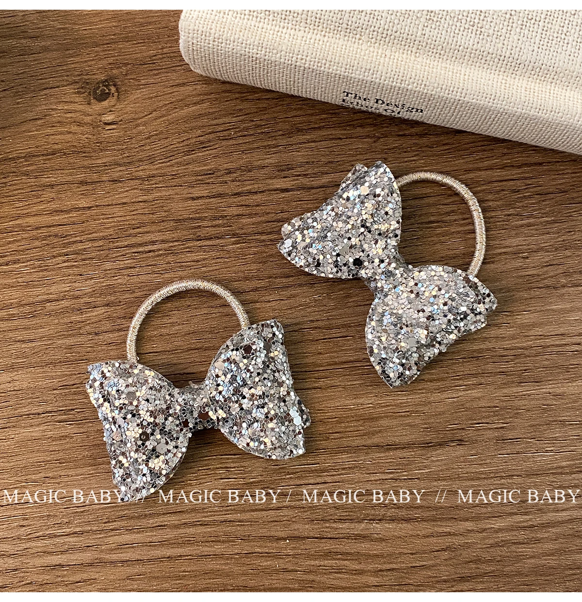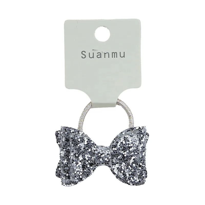 Girls Elegant Lightweight Solid Silver Glitter Bowknot Hair Ties Small Fashion Accessories for Children Sweet Style