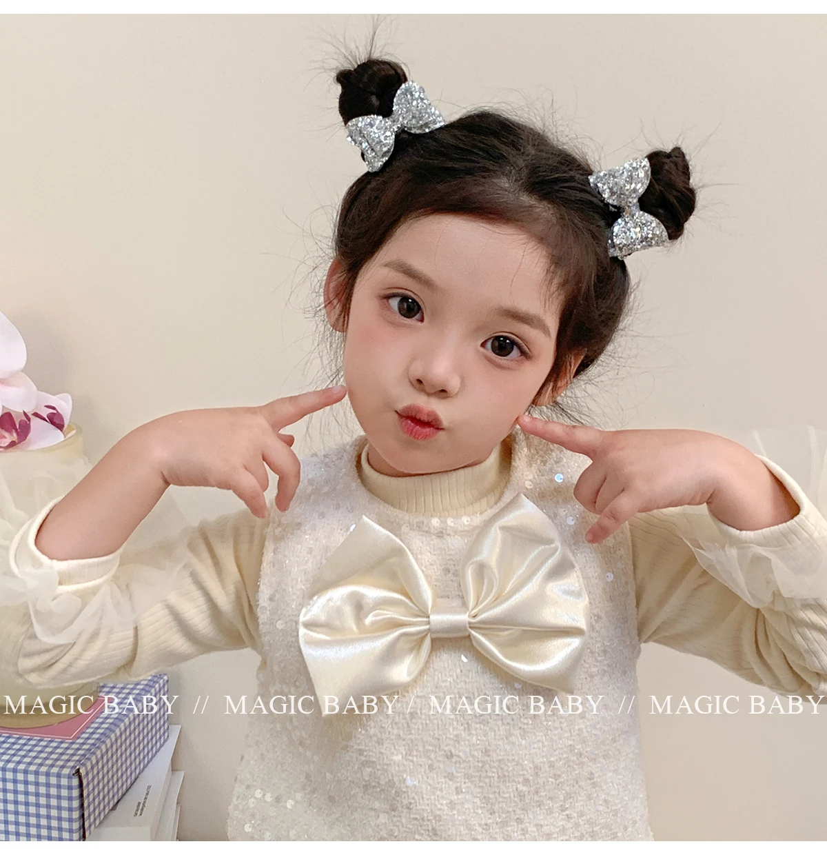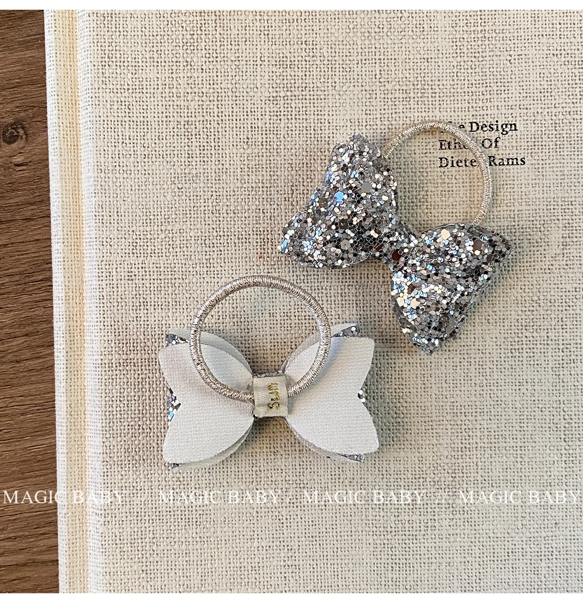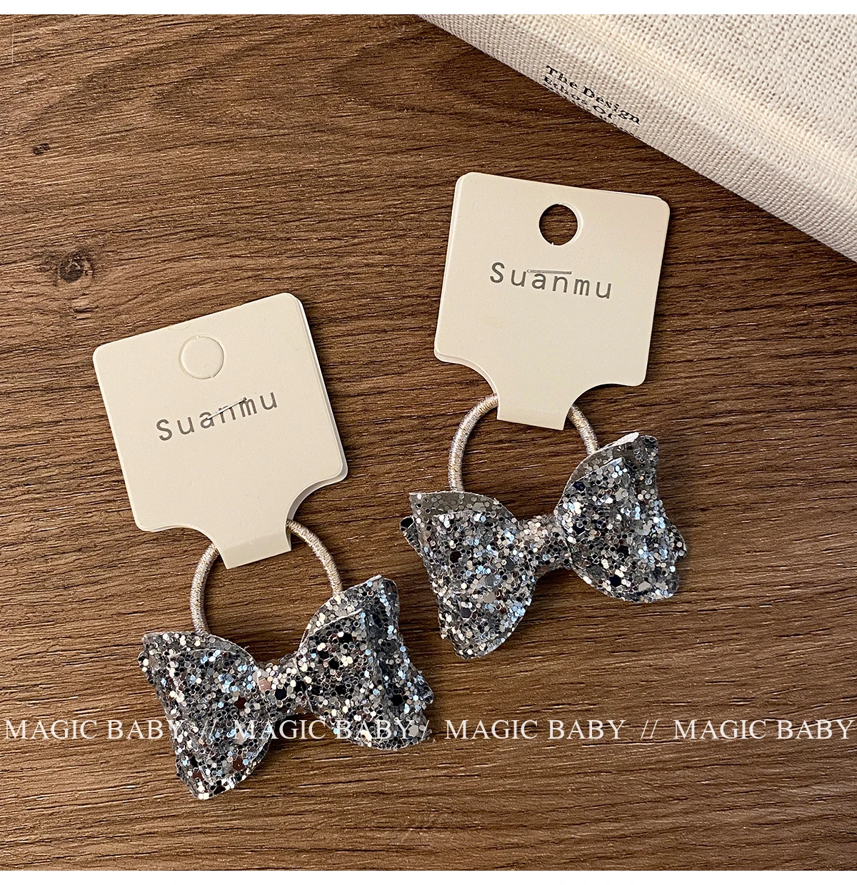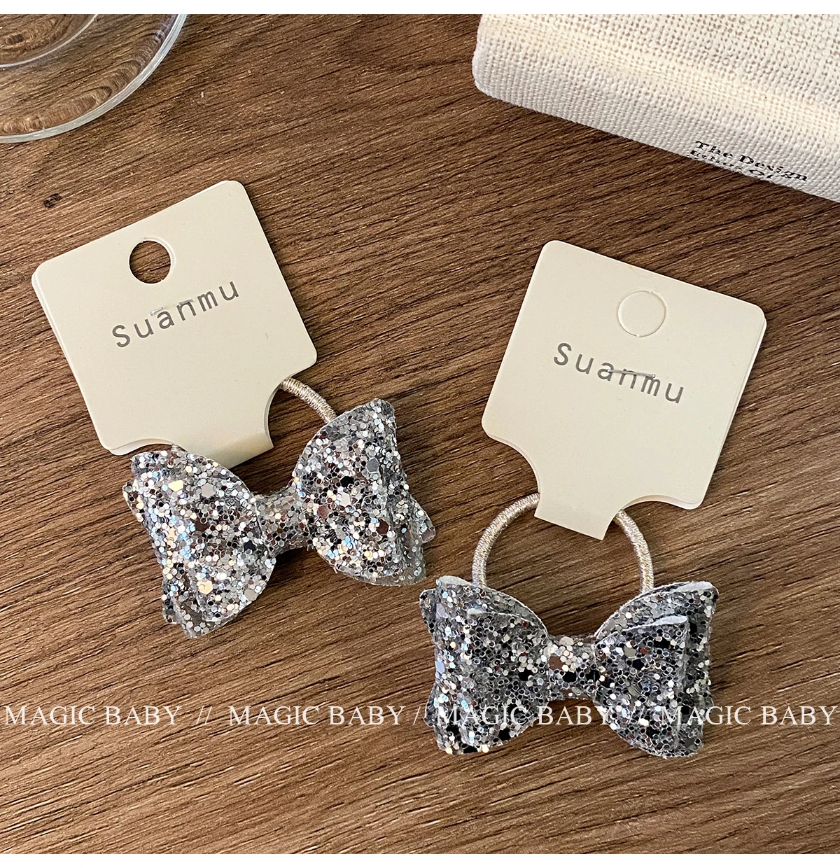 Girls Elegant Lightweight Solid Silver Glitter Bowknot Hair Ties Small Fashion Accessories for Children Sweet Style