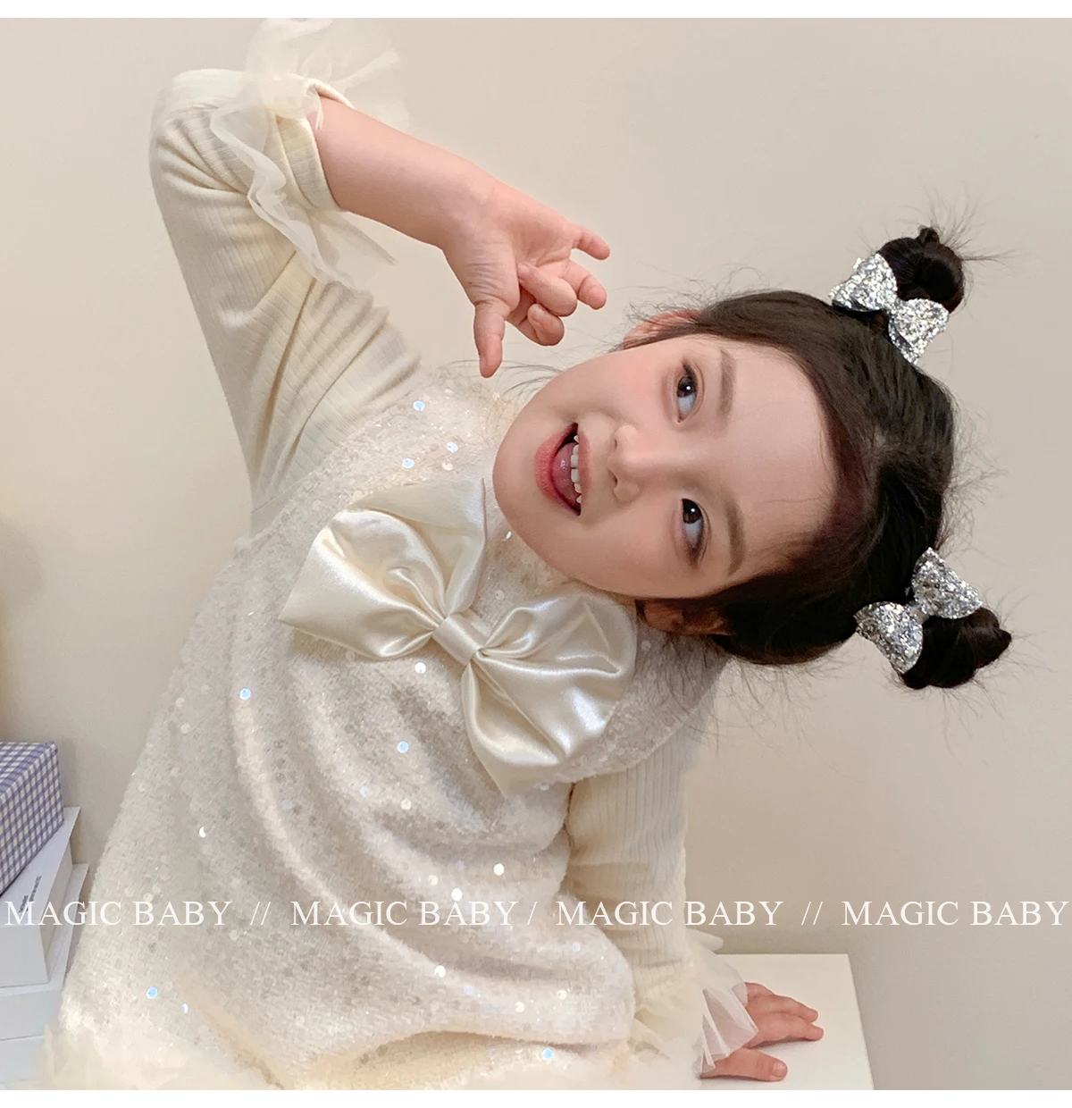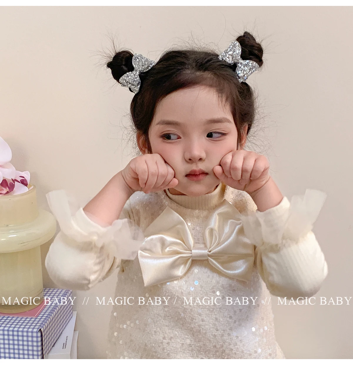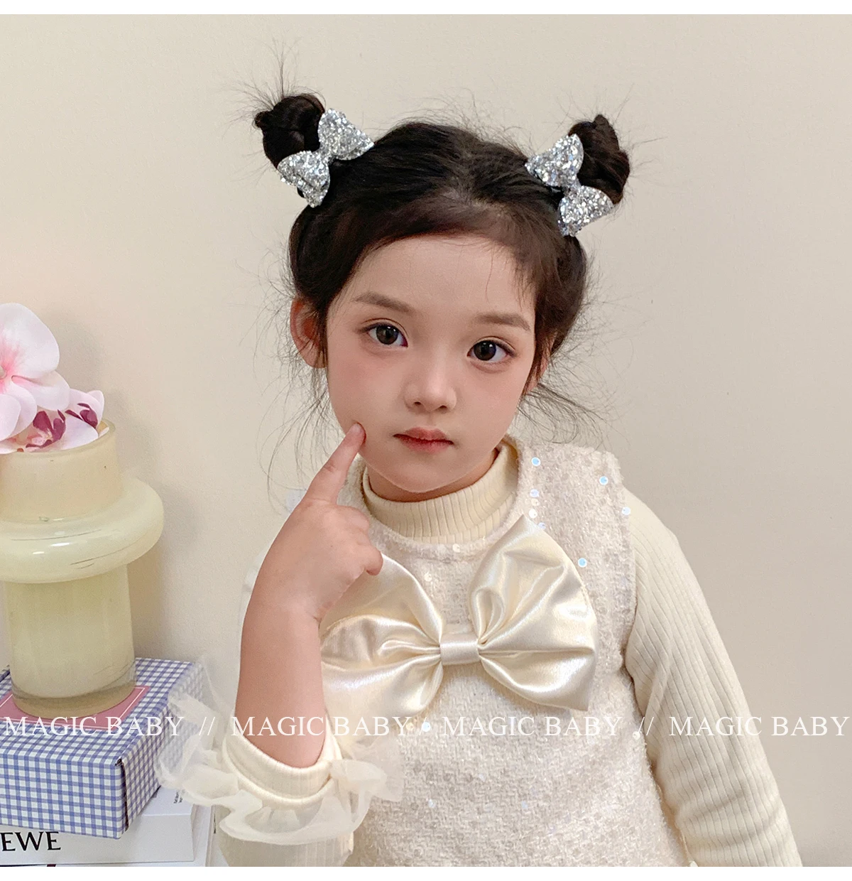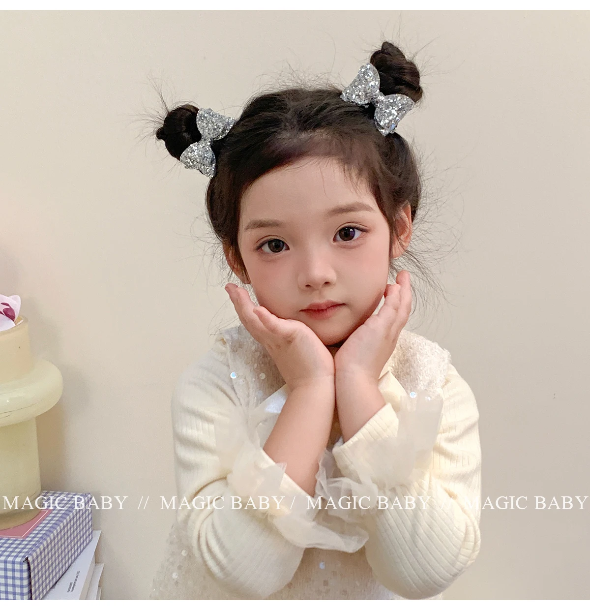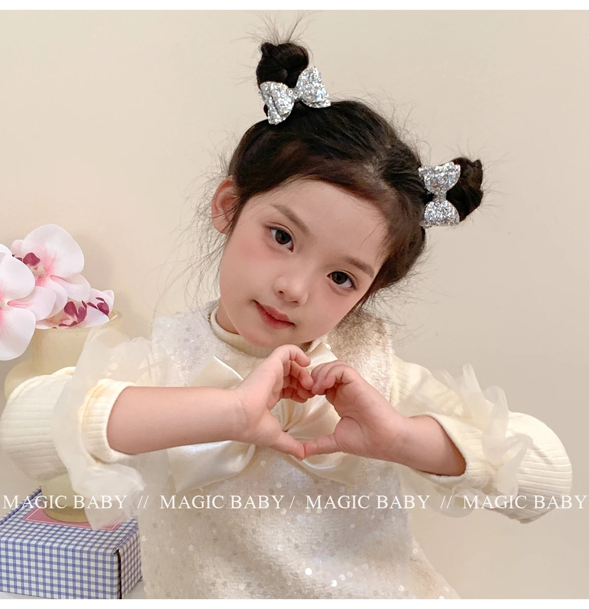 Girls Elegant Lightweight Solid Silver Glitter Bowknot Hair Ties Small Fashion Accessories for Children Sweet Style