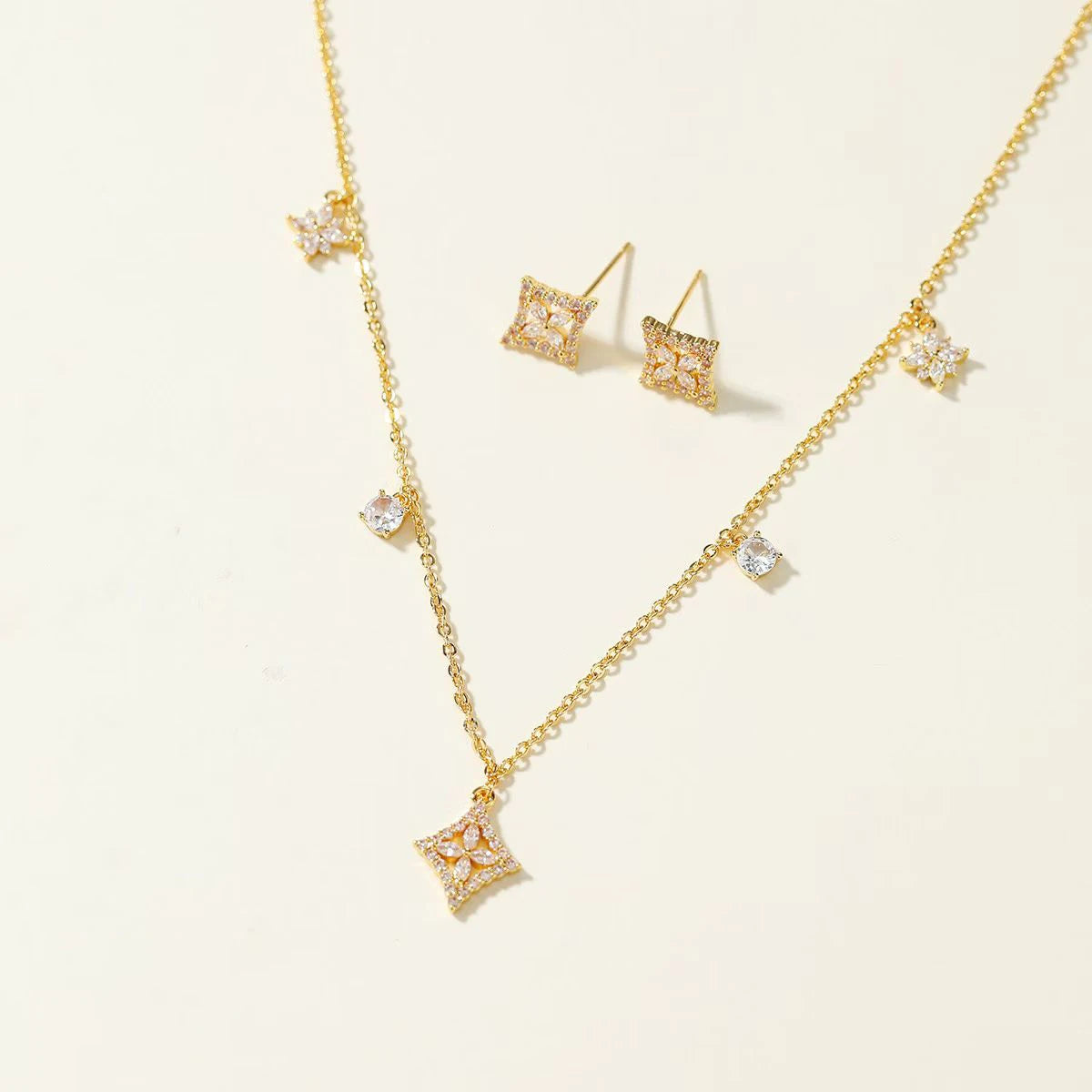 Fashion Refined Sweet Elegant Necklaces for Girls Dainty Glamorous Luxury Stud Earrings Jewelry Sets for Women Lady Accessories
